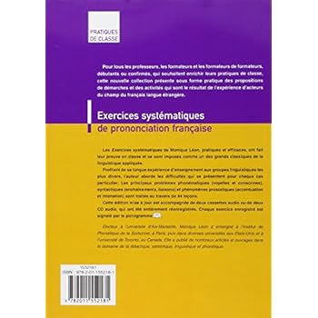 Les Exercices systématiques de Monique Léon, pratiques et efficaces, ont fait leur preuve en classe et se sont imposés comme un des grands classiques de la linguistique appliquée. Profitant de sa longue expérience d'enseignement aux groupes linguistiques les plus divers, l'auteur aborde les difficultés qui se présentent pour chaque cas particulier. Les principaux problèmes phonématiques (voyelles et consonnes), syntactiques (enchaînements, liaisons) et phénomènes prosodiques (accentuation et intonation) sont traités au travers de 44 leçons. Cette réédition (nouvelle maquette) est accompagnée de deux cassettes audio ou de deux CD audio, qui ont été entièrement réenregistrés. Chaque exercice enregistré est signalé par le pictogramme K7.